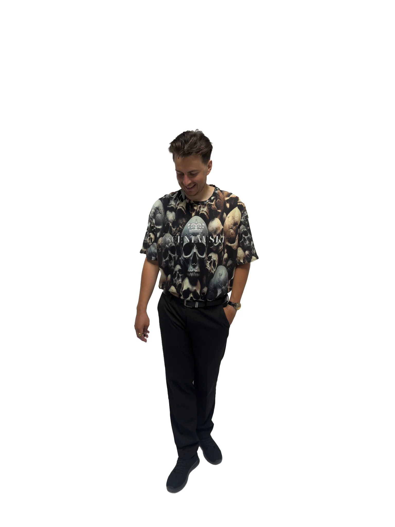 Dark energy in wearable form. The Skull Era T-shirt features an all-over skull design that brings bold contrast and unapologetic attitude to your everyday fit.